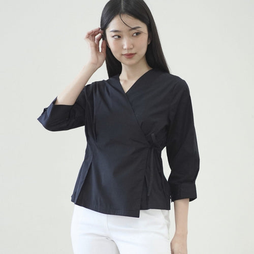 Kimono-Inspired Style: Potongan lengan panjang dengan detail ikat khas kimono, membuat look kasual jadi lebih chic.