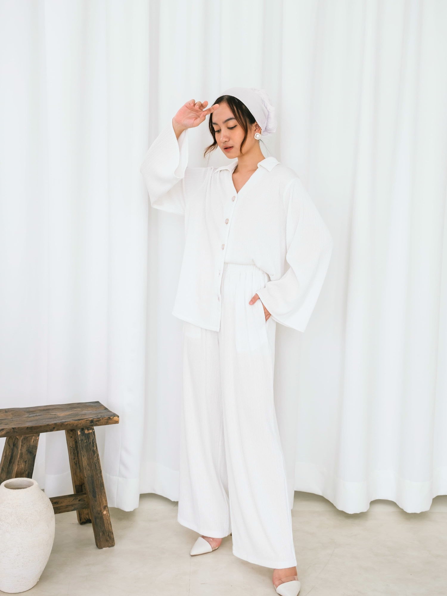 Material: Premium textured polyester – adem, flowy, ironless, dengan permanent texture untuk tampilan polished seharian.